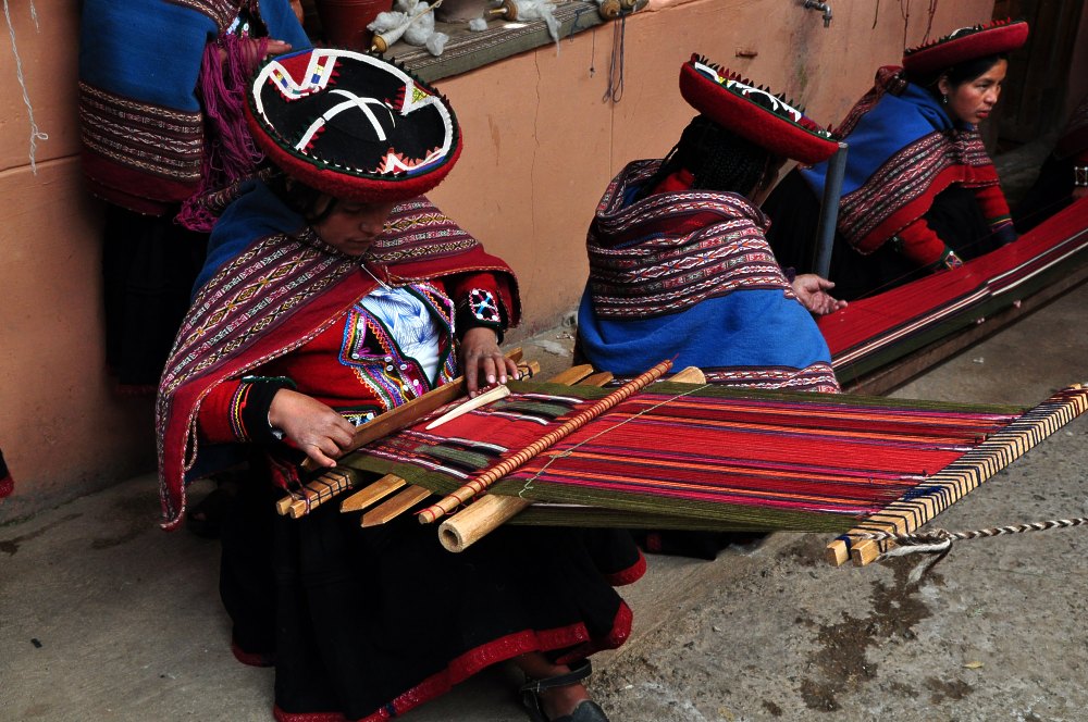 Après un nouveau filage, commence le tissage.