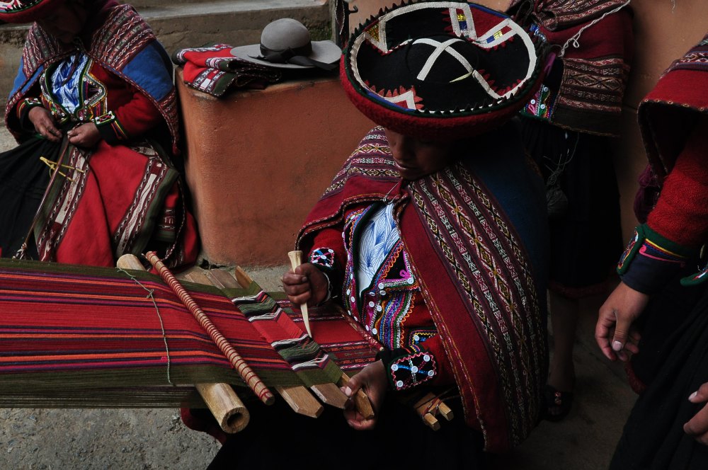 On utilise un os de lama aiguisé pour serrer les mailles.