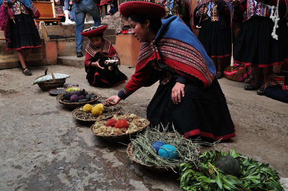 Pour obtenir les différents coloris de la laine, on utilise des plantes et des graines locales connues depuis les Incas. Les graines sont, en général, réduites en poudre.