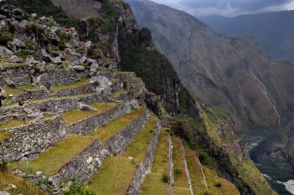 Machu Picchu est construite sur un piton dans le méandre du Rio Urubamba. Le haut du piton est encerclé de terrasses dont le but est de maîtriser le ruissellement, éviter l’érosion et permettre l’agriculture.