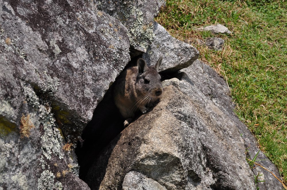 La viscache qui habite pratiquement tous les lieux du Machu Picchu a la taille d’un lapin et ressemble effectivement à un lapin quand on le voit de devant. De côté, elle est tout à fait... originale.
