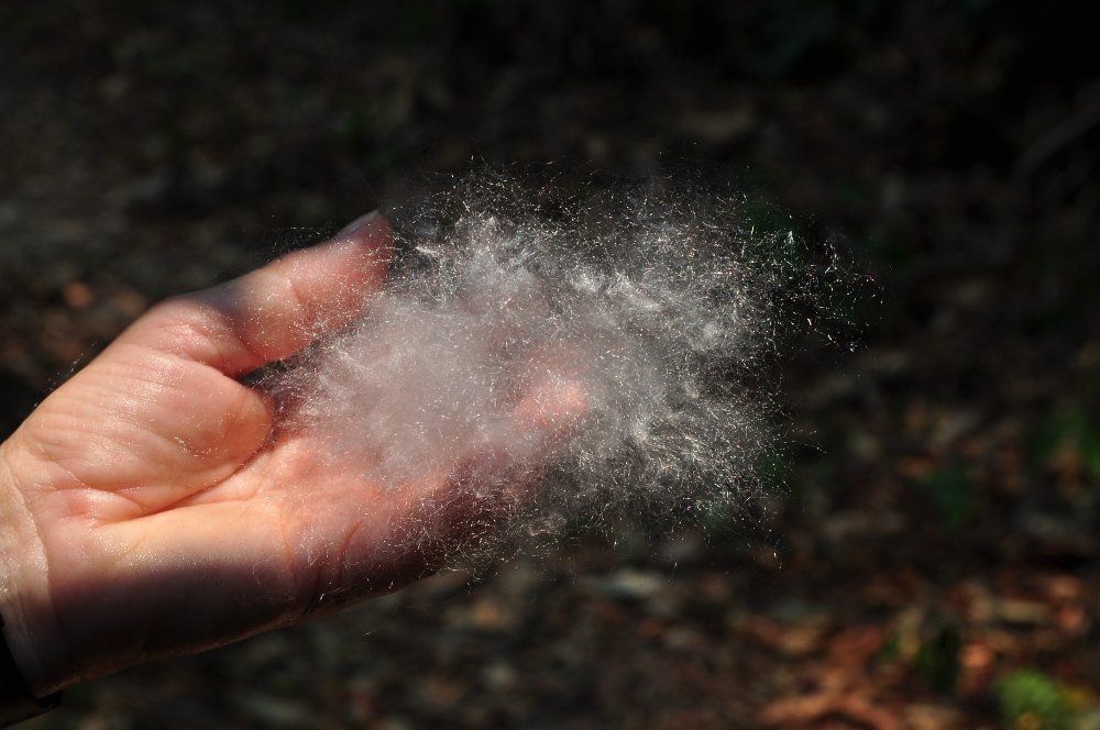 Quand elles ne sont pas mangées par les singes les gousses de lupuna éclatent et libèrent leurs graines. Les fibres sont lâchées dans l’air. Elles sont récupérées par les indigènes et utilisées pour remplir matelas et coussins.