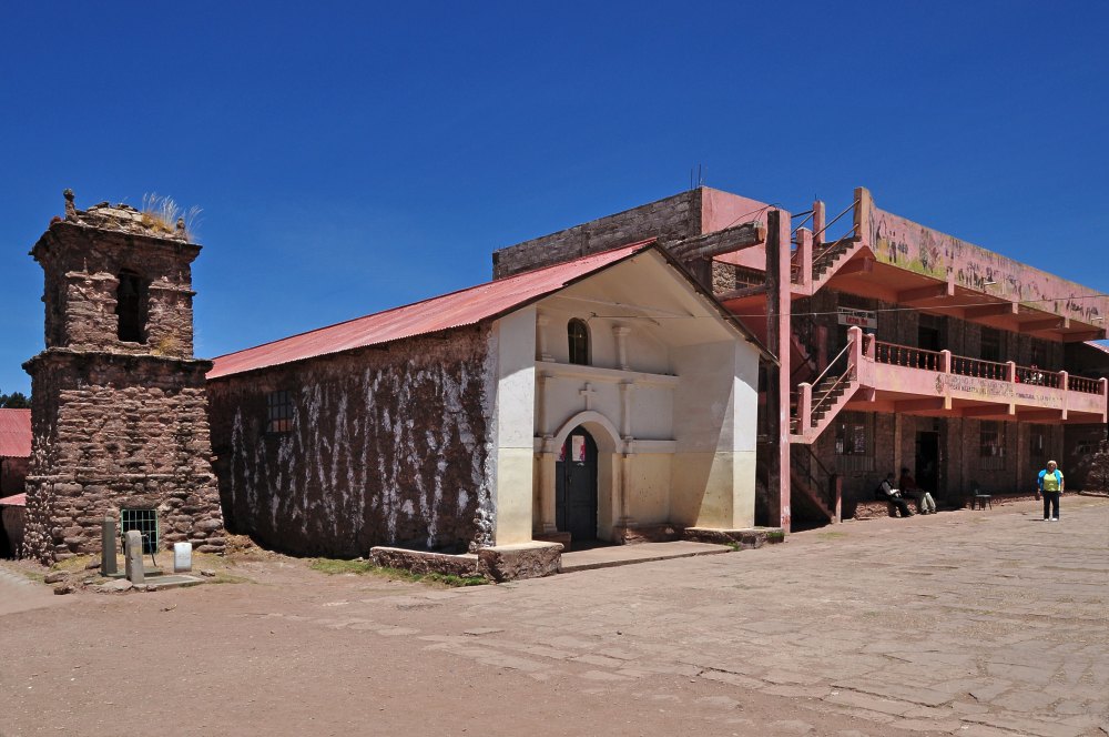 La place principale avec sa tour, l’église et la maison de la coopérative.