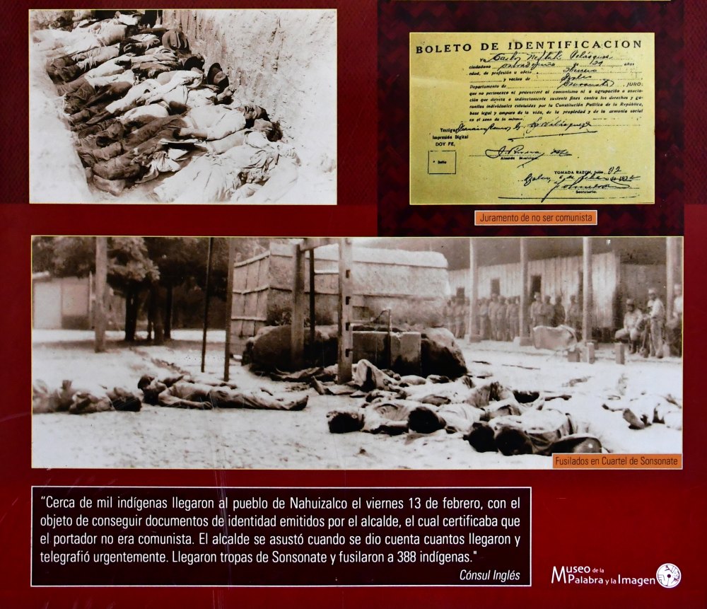 Environ 1000 indigènes arrivèrent à Nahuizalco le 13 février (1932) pour remplir les documents d'identité émis par le maire certifiant que le porteur n'était pas communiste. Effrayé par le nombre, il télégraphia au gouvernement qui lui envoya des troupes : 388 indigènes furent fusillés (Rapport du consul anglais).