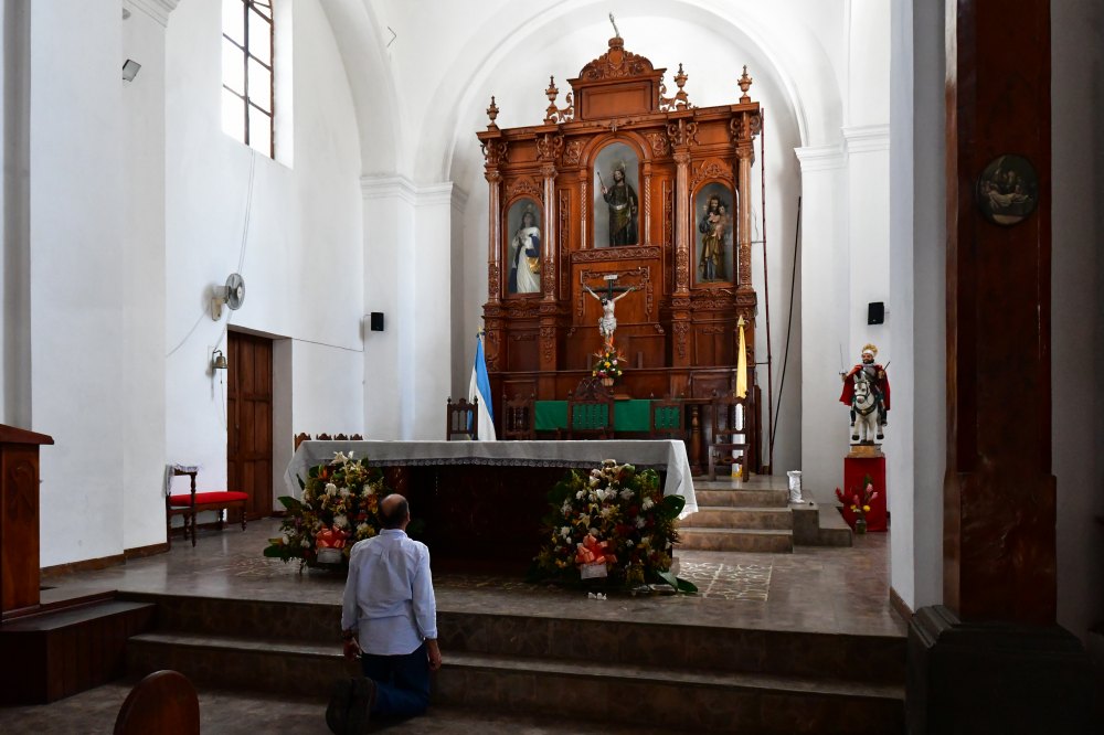 On aperçoit, au-dessus de l'autel, une statue de l'apôtre Santiago vieille d'environ 350 ans.