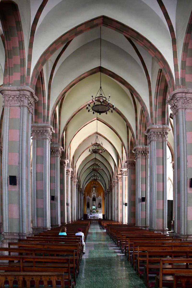 L'intérieur est sobre et clair, simplement décoré de quelques statues.