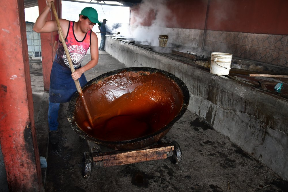 Une grande marmite peut contenir environ 100kg de jus qui sera réduit à environ 20kg de gur, ce sucre brun non raffiné. Les marmites sont généralement fabriquées à partir de tôles galvanisées en acier doux.