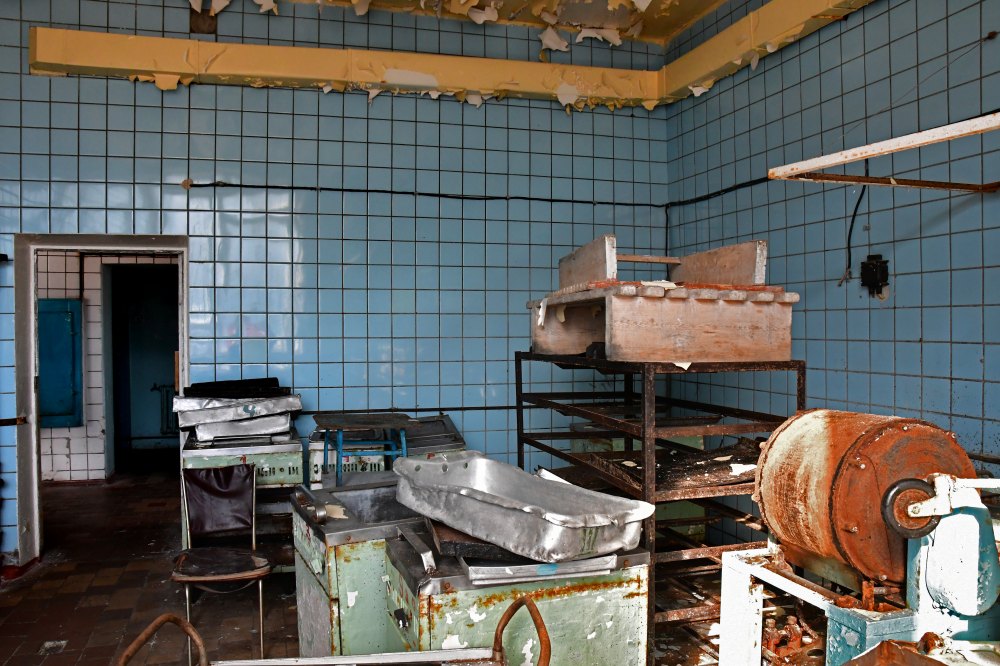 Dans les cuisines, les ustensiles trop lourds pour être volés ou sans intérêt s'entassent sous des plafonds "en dentelle".