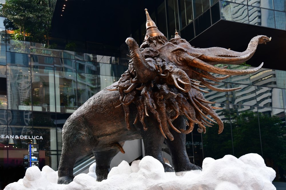 Statue au pied de la Maha Nakhon Tower, au cœur du quartier des affaires.