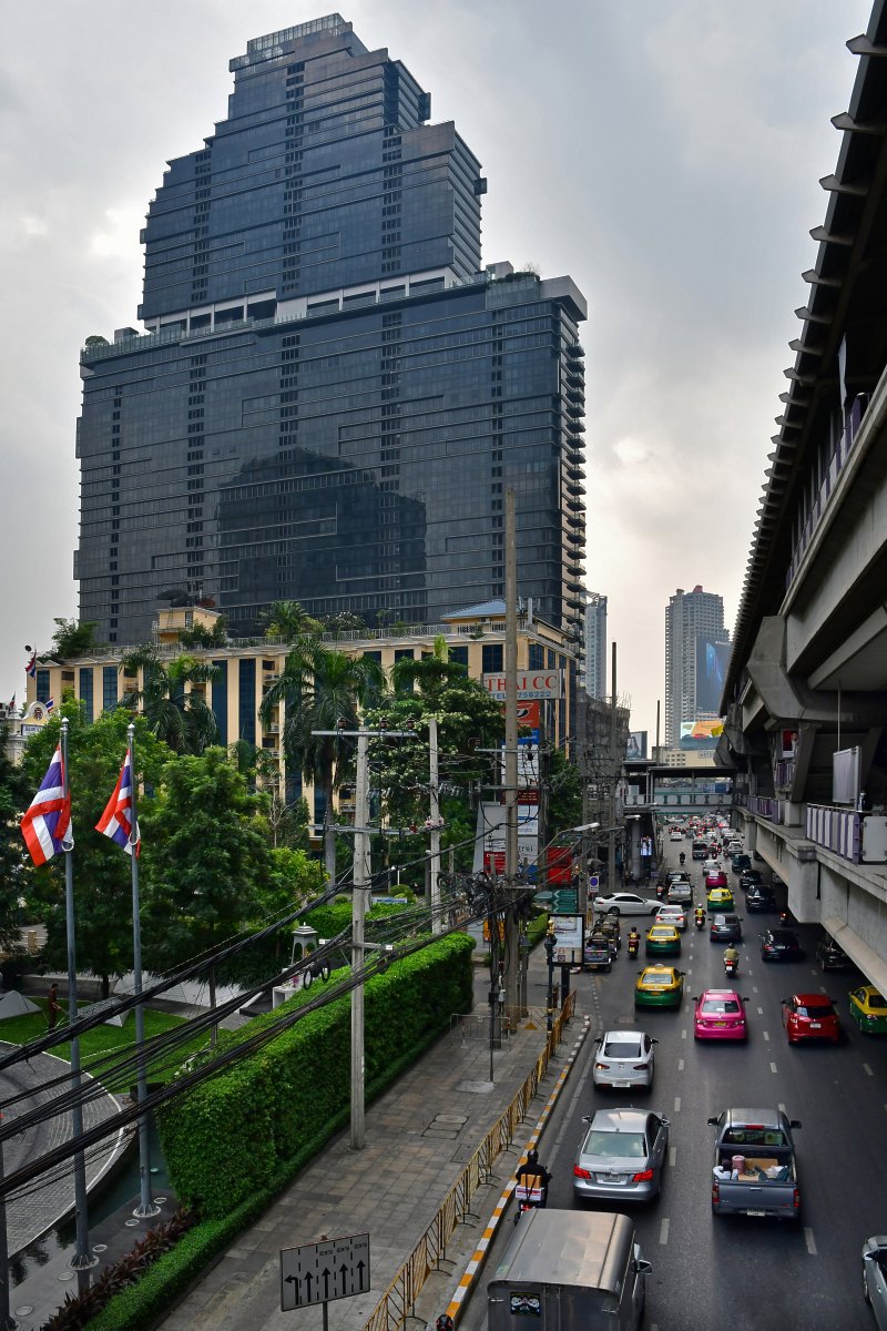 Une grande partie des anciens canaux a été comblée pour créer des rues. La Sathorn Nua Road est surplombée par le métro aérien.