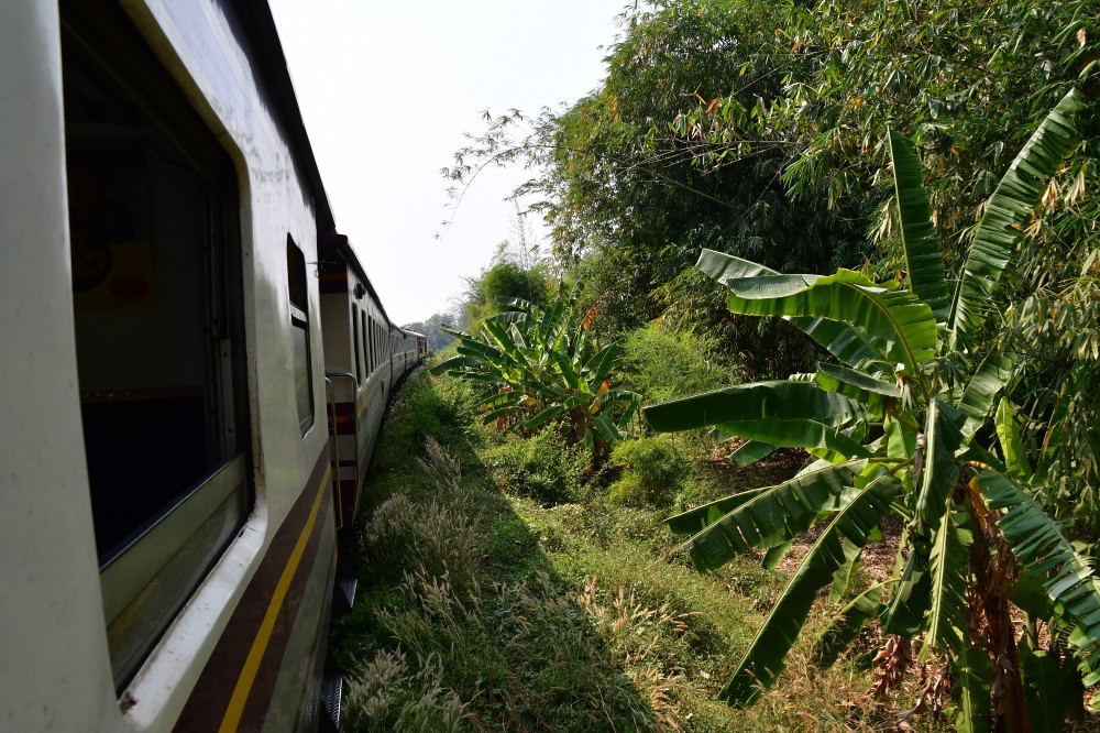 Le train frôle la végétation. En fait, il sert de taille haie.
