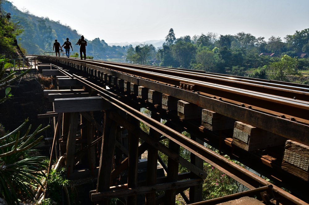 Entre les passages des trains, on peut parcourir à pied la voie sur le viaduc en partie en bois.