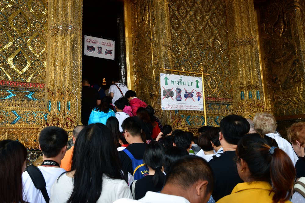 Interdiction de photographier ou filmer le Bouddha d'émeraude. Pour les fidèles qui se pressent en masse, cela n'a pas d'importance.