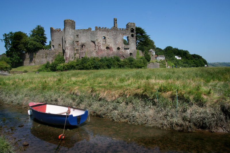 Laugharne castle stands on an earth mound overlooking the estuary of the River Taf.
