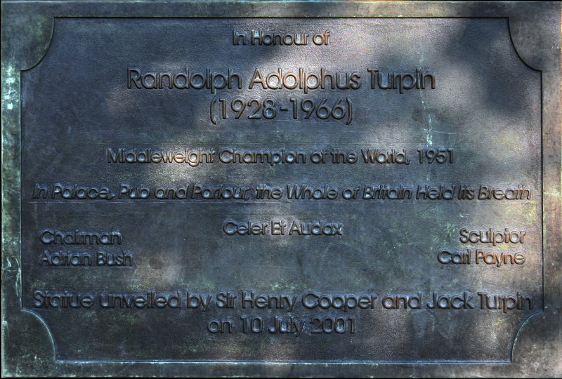Middleweight Champion of the world, 1951. In palace, pub and parlour the whole of Britain held his breath. ~~ Randolph Adolphus Turpin. Champion du monde de boxe mi-lourds en 1951. Dans les palais, les pubs, les salons, toute l'Angleterre retint son souffle. |