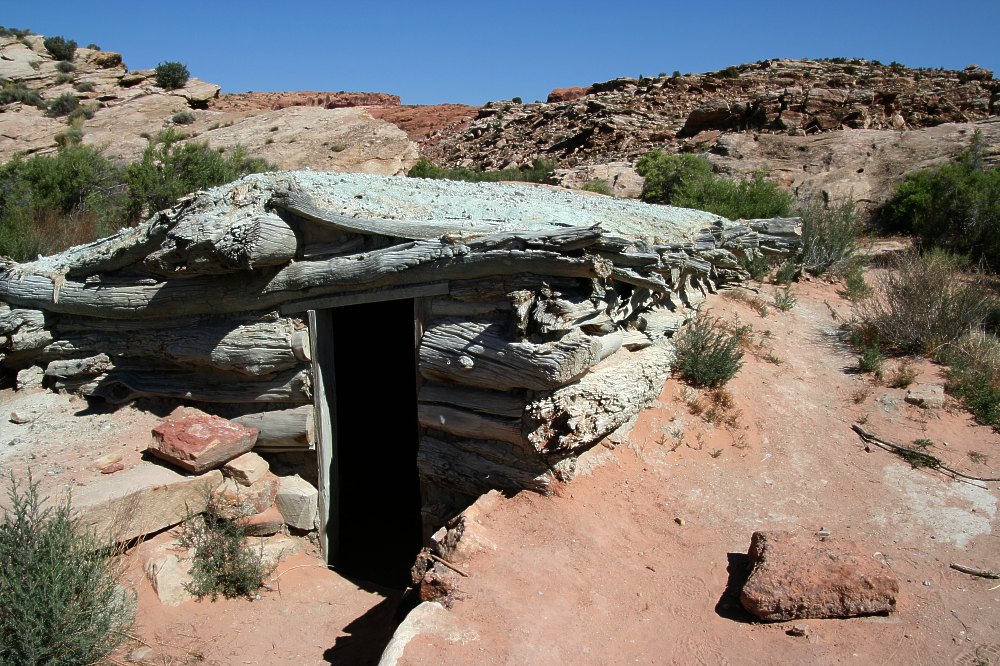 John Wesley Wolfe a bâti cette cabane à une seule pièce, un enclos pour les chevaux et un petit barrage sur le Salt Wash à la fin des années 1800. Il y a vécu pendant près de 10 ans avec son fils aîné Fred.