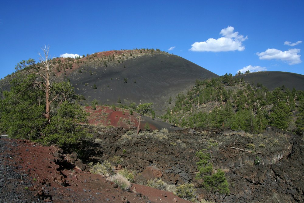 Les coulées de lave sont parfaitement visibles sur les flancs du cratère.