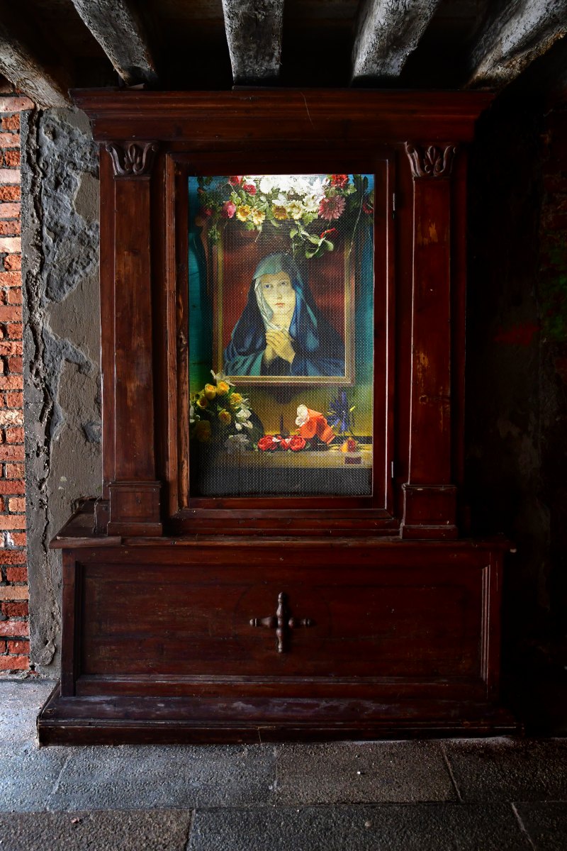 Petit autel de rue sous un sottoportego, ruelle couverte.