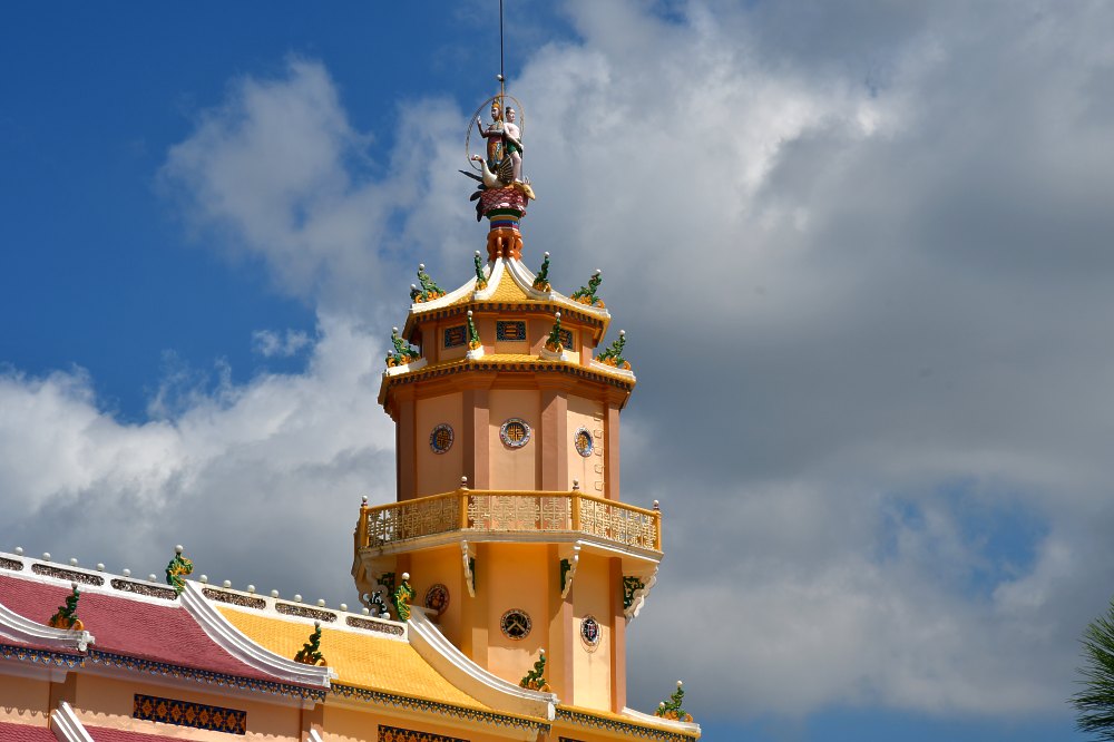 Le temple comporte 4 tours représentant la diversité des architectures religieuses du monde. La symbolique des chiffres est partout présente faisant appel au 4 (les 4 choses à éviter : la colère, la tristesse, la jalousie, la cupidité) et au 3 (les 3 choses à suivre : la joie, l’amour et l’optimisme).