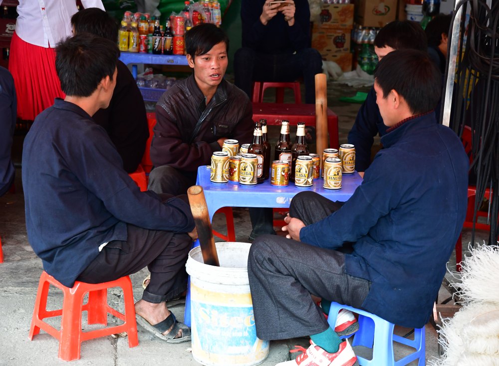 L'alcoolisme est le fléau principal des montagnes nord vietnamiennes. C'est la cause première d'accidents. On nous rapporte un fait surprenant. Les femmes encouragent leurs maris à boire. Ils ont l'alcool paisible et pendant qu'ils dorment, elles s'occupent du commerce. Il n'y "aurait" pas, dans ces lieux, de violence alcoolique.