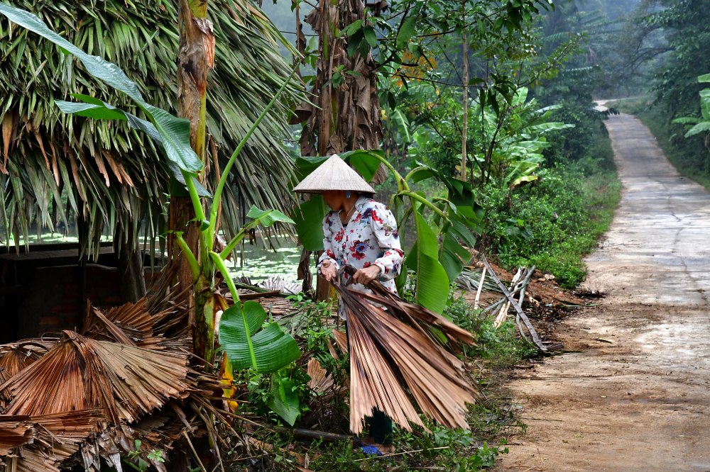 Ramassage des palmes sèches pour la couverture des toits.