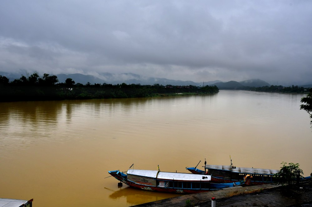 Nous arrivons à la Pagode de la Dame Céleste par la rivière des Parfums, sous la pluie encore une fois.