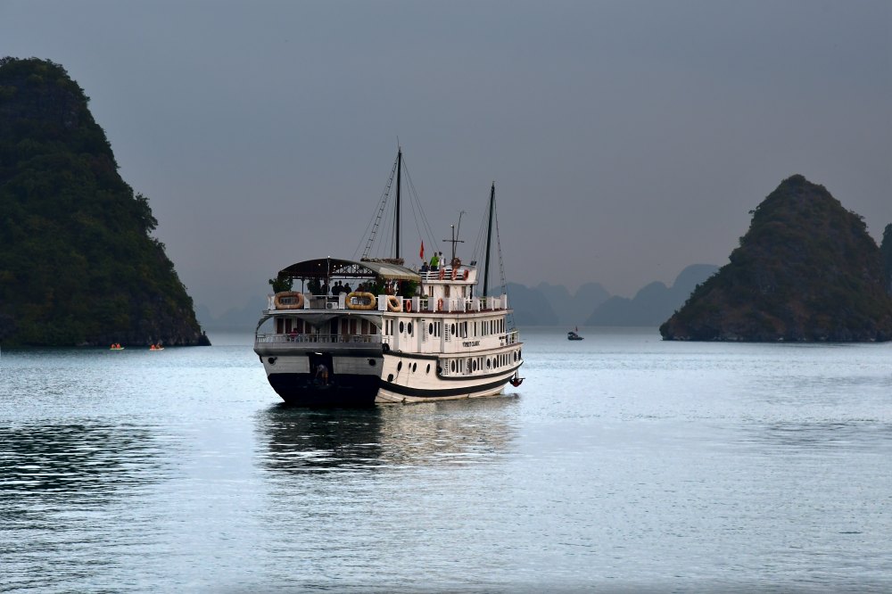 Juste avant le lever du soleil, la brume monte de la mer et rend le paysage fantomatique.