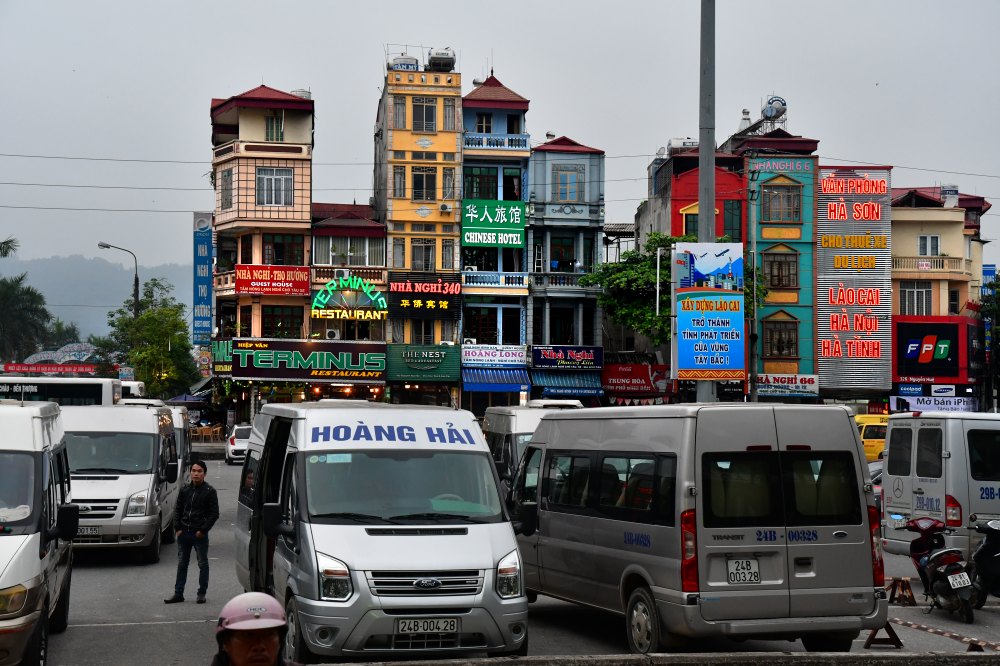 Devant la gare, l'Hôtel Terminus. Si ce n'était la présence des maisons tubes, on pourrait se croire en France. Ce ne sera pas la seule surprise.