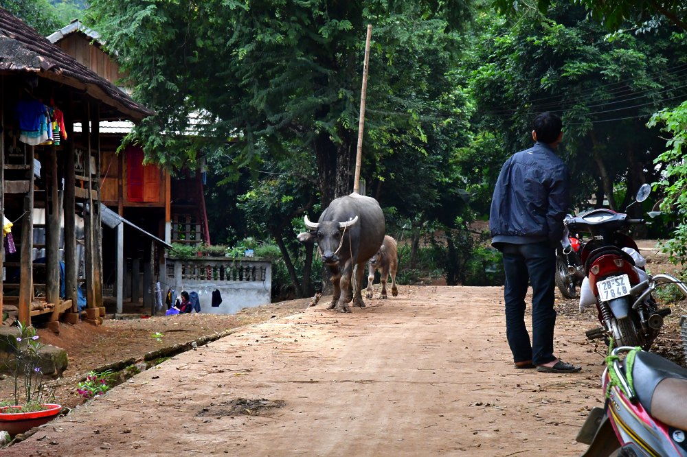Priorité à la bufflonne et à son petit.