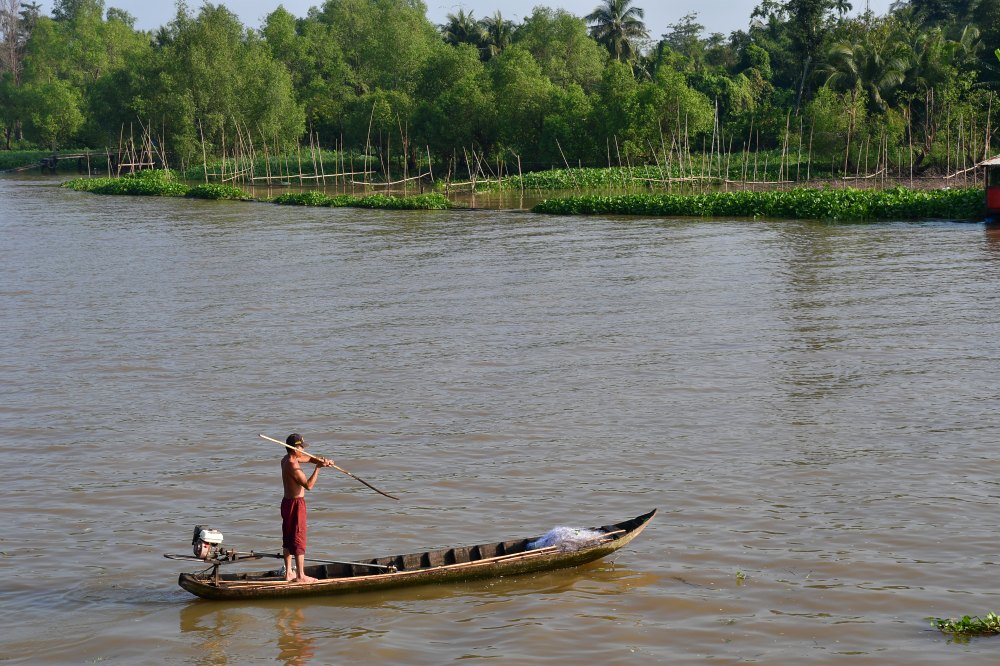 Bassins de pisciculture au milieu des jacinthes d'eau.