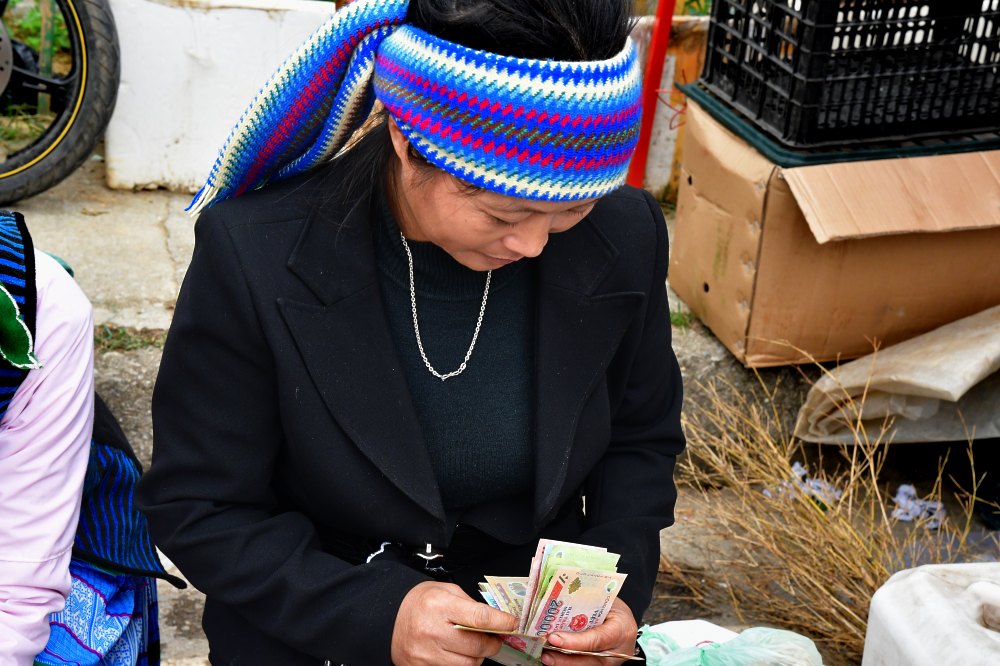 La "banquière" échange les yuans chinois contre des dongs vietnamiens.
