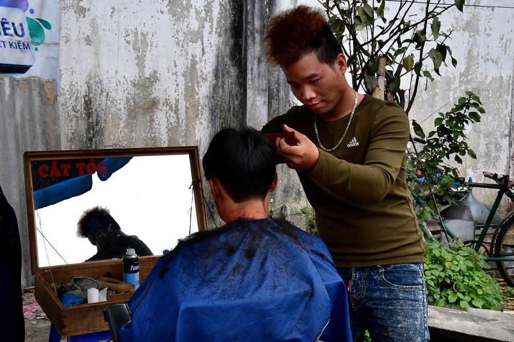 Le marché est aussi l'occasion de se faire couper les cheveux.