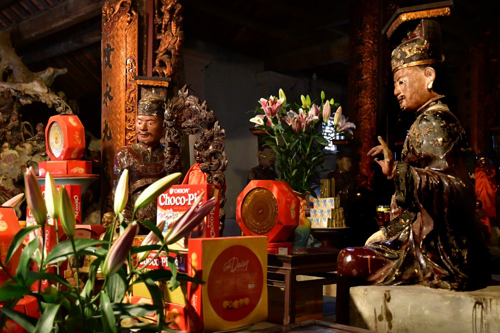 Offrandes devant l'autel principal. Remarquez le succès des Choco Pic.